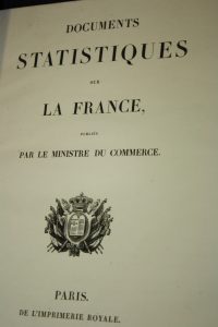 Documentsstatistiques sur la France, publiés par le Ministère du Commerce (comte T. Duchâtel).Paris, Imprimerie Royale, 1835 ; in-folio ; demi-veau glacé vert.