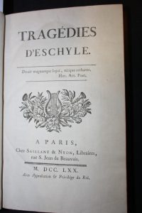 Eschyle :Tragédies.Paris, Saillant, 1770, in-8 veau marbré.