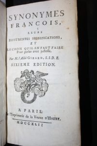 Girard :Synonymes françois. Paris, d’Houry, 1742, in-12 basane fauve.