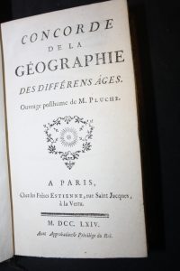 Pluche :Concorde de la Géographie des Différens âges.Paris, Estienne, 1764, in-12 veau marbré, cartes dépliantes.