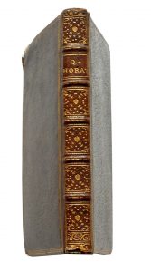HORACE. Q. Horatius Flaccus Scholiis sive annotationibus instra commentarii illustratus a Ioanne Bond. XVIIe s. In-12, reliure maroquin brun, dos à 5 petits nerfs orné, triple filet en encadrement sur les plats, tranches dorées, roulette...
