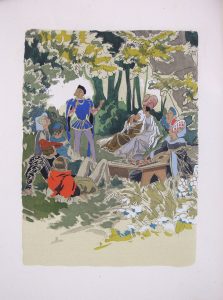 texte et jolies lettrines illustrées. Sont glissées dans les volumes quelques planches illustrées par Brenot pour illustrer les Contes de Boccace. Tiré à 1000 ex. numérotés dont celui-ci, un des 800 ex. sur vélin de Lana.