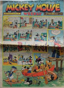 DISNEY (Walt). Réunion de deux numéros de Mickey Mouse Weekly. N° 177, June 24th, 1939 et July 21, 1956. 2 numéros de 12 pp. chacun. Pliure centrale, petites déchirures. État d’usage.