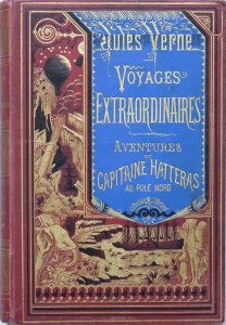 VERNE (Jules). Aventures du Capitaine Hatteras au Pôle Nord. Les Anglais au pôle nord - Le Désert de glace. 150 vignettes par Riou. Paris, Hetzel, s. d. (v. 1875-1978). In-8, cartonnage éditeur polychrome (signée Lenègre, plaque de Souze) à la...