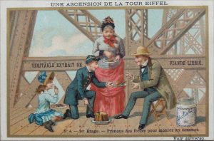 près de 40 grandes (env. 20 x 10 cm) et 160 au format carte de visite : Biscuits Olibet, Chocolat du Planteur, Chocolat Poulain, Ascension de la Tour Eiffel (Liebig), Maison Rouzaud et Rafaillac à Bordeaux, Maison Aux quatre frères à Bordeaux, statues d’hommes célèbres, opérettes.
