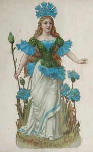 CHROMOS. Bleuet. D’après les Fleurs animées de Grandville. Grande chromo découpée. Hauteur : 26,8 cm. Bel état. Encadrée.