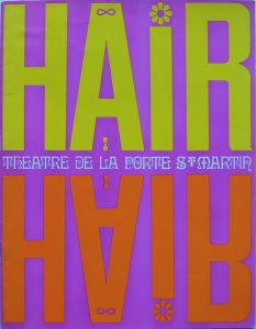 [PROGRAMME]. Hair. Théâtre de la Porte Saint Martin. 1969-1970. Programme in-4, agrafé. Couverture illustrée. Non paginé (36 pp.). Nombreuses photographies et publicités. Texte en français. Très bon état. Joint : La Révolution Française....