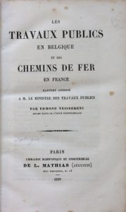 [TRANSPORTS]. TEISSERENC (Edmond). Les Travaux Publics en Belgique et les Chemins de Fer en France. Paris, Mathias, 1839. In-8, reliure de l’époque demi-veau chamois, dos lisse orné. Petites épidermures. viii-(2)-672 pp. et une carte hors texte...