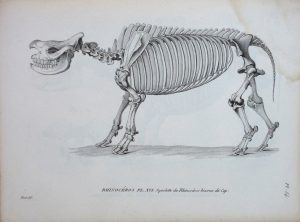 CUVIER (Georges). Recherches sur les Ossemens Fossiles, où l’on rétablit les caractères de plusieurs animaux dont les révolutions du globe ont détruit les espèces. 4e édition. Atlas. Paris, d’Ocagne, 1836. 2 volumes de planches in-4,...