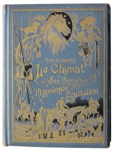 LAGONDIE (Comte J. de). Le Cheval et son Cavalier. Hippologie - Equitation. 3e édition orné de 65 vignettes. Paris, Rothschild, s. d. (vers 1880). In-8, cartonnage éditeur (Magnier) percaline bleu-gris à décor doré de chevaux et cavaliers sur...