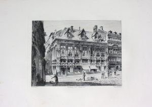 [ROUEN]. AUGE (E., éditeur). Rouen Illustré. Rouen Illustrated. 20 eaux-fortes par Brunet-Debaines, J. Adeline, Toussaint et Nicolle. Introduction par Charles Deslys. Notices par Raoul Aubé. Rouen, chez l’éditeur, s. d. (1881). In-folio,...