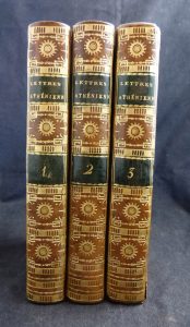 [GRÈCE]. Lettres athéniennes, ou Correspondance d'un agent du roi de Perse, à Athènes, pendant la guerre du Péloponnèse. Paris, Dentu, an XI (1803). 3 volumes in-8, basane tachetée, dos lisse orné, pièces de titre et de tomaison vertes,...