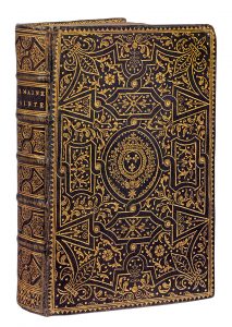 aux angles, armoiries au centre, dos orné de compartiments aux petits fers pointillés, roulette sur les coupes et intérieure, tranches dorées (Reliure de l'époque).