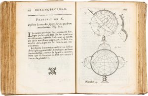Seconde édition, en partie originale, de cet ouvrage sur la construction et l'usage des horloges en divers genres, de l'horloge universelle, mais aussi des azimuths, méridiens et parallèles, et des instruments, déclinatoire, boussole, cadrans lunaires, solaires et sciaténiques, etc. Il connut sept éditions entre 1641 et 1701. # L'illustration comprend un beau titre-frontispice gravé en taille-douce et 76 figures à pleine page, dont 2 dépliantes. La planche 33, bien que mentionnée dans le texte, ne fut probablement jamais imprimée et manque ici comme dans tous les exemplaires. # Séduisant exemplaire en vélin d'époque. # Il renferme, au milieu de l'avis au lecteur, 4 feuillets ajoutés donnant l'errata d'une autre édition, dont les corrections ont été reportées à la plume dans le corps du volume, ainsi qu'un index des planches manuscrit, copié sur les premières gardes blanches de l'exemplaire. # Les feuillets du cahier C ont été reliés dans le désordre. Quelques rousseurs et pâles mouillures. # Houzeau-Lancaster, n°11455 – Polak, n°8584.