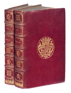Première édition in-8 de la traduction d'Amelot de La Houssaye, parue la même année que l'édition originale in-4. # Reliure aux armes de Louis-Joseph d'Albert de Luynes (1672-1742), prince de Grimberghen et du Saint-Empire, ornée des pièces d'armes d'Albert et de Rohan alternées sur le dos. Elle est attribuable à Boyet. # Timbre sec à la devise Le Visconte & l’Enor. # Armoiries grattées sur le premier tome avec manque de peau. # Brunet, V, 638.