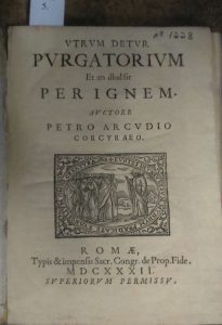 Arkoudios (Petros) Utrum detur purgatorium et an illud sit per ignem - Rome, Congrégation de propagation de la foi, 1632. - In-4°: 84p. - vélin ancien. (rousseurs, petit accroc au dos). Arkoudios : savant prêtre grec né à Corfou, décédé en...