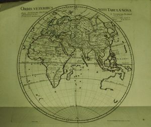 dépliantes ont des bords coloriés. Restes de reliure demi-basane. Il s'agit principalement de géographie ancienne.