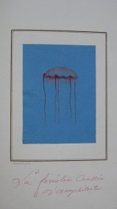 [Manuscrit] Lesson (René, Primevère) Synopsis des genres et des espèces de méduses - In-4° : Titre en couleur et 65 pages (chiffrées 62) daté Rochefort Juin 1837 et 15 planches dessinées et coloriées parfois montées, certaines sur papier...