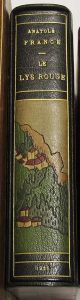 France (Anatole) Le Lys rouge. ill. coul. de Omer Bouchery - Paris, Kra, 1925 - in-4 - reliure maroquin à grains longs aubergine, orné d'un motif mosaïqué sur chaque plat et d'un autre au dos, filet d'encadrement doré sur les plats et sur les...