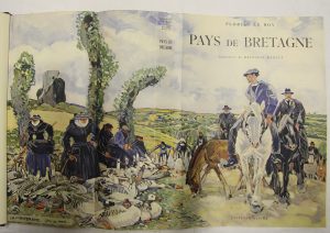 Tourisme - 9 volumes • Le Roy (Florian) Pays de Bretagne. Illustrations de Mathurin Meheut - Paris, Alpina, 1937 - in-folio : ill. noir et couleur - demi-maroquin grenat à coins, dos à nerfs, couv. entière conservée. ex. n°123/5500. •...