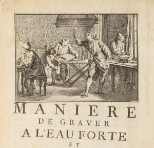 * BOSSE (Abraham) De la manière de graver à l'eau forte et au burin et de la gravure en manière noire, avec la façon de construire les presses modernes et d'imprimer en taille douce. 1 vol. in-8 relié plein veau époque, dos à nerfs à...