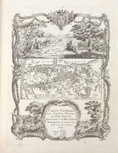 fleuris, triple filet d'encadrement dont 1 écarté sur les plats, dentelle dorée sur les coupes. Comprend 40 feuillets dont 1 titre-frontispice & 22 cartes et planches.