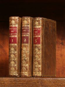 * GESSNER Œuvres complètes. 3 vol. in-24 de XX-218-VI-VIII-232-290 pp. reliés plein veau raciné époque, dos lisse orné, dentelle dorée d'encadrement sur les plats, tranches dorées. Genève s.n. 1786. Avec 1 frontispice, 1 titre-frontispice &...