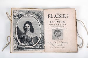 GRENAILLE (de) sieur de Chatounières Les plaisirs des dames dédiez à la Reyne de la Grande-Bretagne. 1 vol. pt in-4 de [8]-387-[8] pp. relié plein vélin époque. Avec 2 lacets de fermeture. Paris Clousier 1641. Frontispice du portrait de...