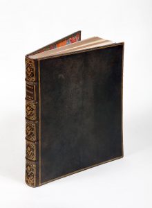 * HORACE Quintus Horatius flaccus. 1 vol. gd in-4 de 344 pp. relié plein maroquin du XVIIIe, dos à nerfs à caissons fleuris, triple filet d'encadrement sur les plats, double filet sur les coupes, dentelle intérieure fleurie, tranches dorées....
