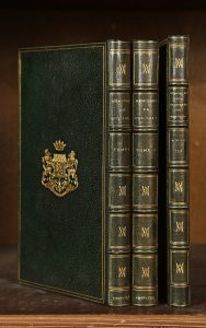 Soit 3 vol. gd in-12 de [12]-244-300 pp. reliés plein maroquin vert empire, dos à nerfs à caissons ornés au chiffre de Massena, daté en pied, tranches dorées, double filet d'encadrement sur les plats avec au centre, les armoiries du Maréchal d'Empire André Masséna, avec comme devise : Victor et Fidelis. Reliure signée.