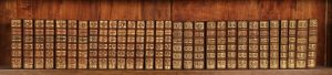 XLVIII-610-[10]-651-[15]-761-[11]-598-[16]-650-[10]-722-[8]-650-[14]-723-[17]-613-[10]-571-[11]-[5]-782-[4]-767-[5]-528 pp. reliés plein veau glacé, dos à nerfs à caissons fleuris. Paris Vve Estienne et fils [années composites de 1740 à 1748].