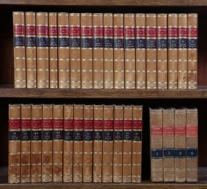 * ROLLIN Œuvres complètes. 30 vol. in-8 de 557-475-590-456-520-523-586-506-507-544-553-493-559-563-493-491-556-640-512-560-527-563-502-481-541-488-564-465-446-492 pp. reliés ½ veau blond glacé, dos à faux-nerfs à liserés dorés. Paris Werdet...