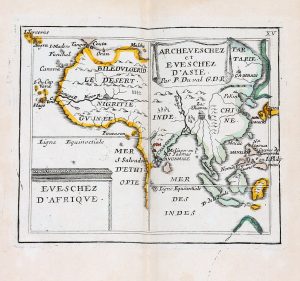 VAL (Pierre du) Le monde chrestien où sont les cartes des Archeveschez et des Eveschez de l'Univers (suivi de) Petites tables généalogiques touchant les droits et les interests des Princes. 1 vol. in-16 relié plein veau époque, dos à nerfs à...