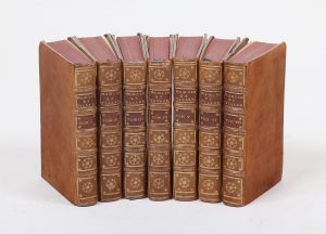 VILLEROY (Mr de) Mémoires d'Etat. 7 vol. pt in-12 de [3]-368-[2]-380-365-[2]-362-[2]-[4]-390-395-[5]-358-[2] pp. reliés plein veau blond glacé, dos à nerfs à caissons ornés, tranches rouges, roulette intérieure. Amsterdam Aux dépens de la...