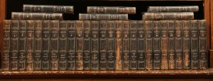 * CHATEAUBRIAND Œuvres complètes. 32 vol. gd in-8 reliés ½ basane, dos lisse à caissons dorés. Paris Pourrat 1837-1839. Avec 14 frontispices & 1 carte dépliante au vol. 1. & 69 gravures. Certains dos frottés, pp. brunies & rousseurs par...