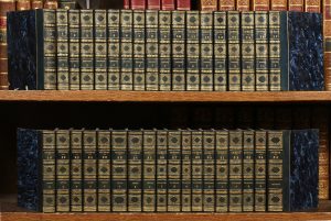 * CICERON Œuvres complètes. Trad. de Le Clerc. 36 tomes en 35 vol. [Tome 1 en 2 parties] in-12 reliés ½ basane bleue, dos à nerfs orné, tranches jaspées. Paris Lequien 1827 (2e éd.) Bel ex. Réf : Brunet II - 50