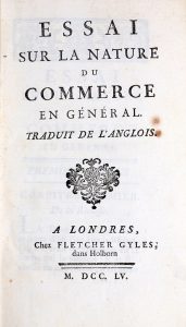 * ANONYME [CANTILLON (Richard)] Essai sur la nature du commerce en général. Traduit de l'anglois. 1 vol. gd in-12 [174x105 mm] de 430 - [6] pp. relié plein veau (post.), dos lisse à liserés dorés, pièce de titre, filet d'encadrement à froid...