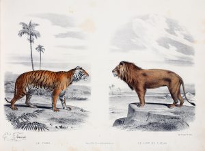 * [TRAVIES] BUFFON En estampes. Planches et illustrations par Edouard Traviès. Texte par De Conty. 1 vol. (vol. 2) gd in-4 oblong relié pleine percaline brune éditeur, dos à nerfs à caissons dorés. Paris Ledot aîné s.d. [1864]. Avec 24...