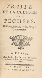 * ANONYME [COMBES (de)] Traité de la culture des pêchers. 1 vol. gd in-12 de XVI-198-[2] pp. relié plein veau marbré époque, dos lisse à caissons fleuris, tranches rouges. Bel ex. Peu commun. Réf : Barbier IV - 755a - Oberlé Fastes 621