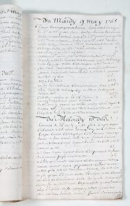 1 cahier (ft 22x38) couverture vélin souple de 69 pp. d'une écriture très lisible [du 25 février 1758 au 17 février 1759].