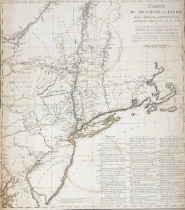 données pendant ces campagnes ; gravée d'après le dessin original qui a été présenté au roi ; fait par le Sr. Capitaine du Chesnoy, officier français, aide camp de M. le Marquis de La Fayette, servant alors dans l'armée américaine. Paris Perrier [vers 1780]. (format : 64,3x74,6 cm).