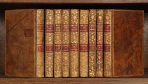 Rousseurs par endroits, accroc sur le premier plat du vol. 1, pte épidermure au vol. 8, qq. coins & bords frottés.
