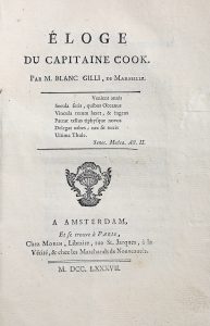 * BLANC GILLI [Mathieu] Eloge du capitaine Cook. 2 parties en 1 vol. in-8 broché de VIII-117 pp. en couverture d'attente. Amsterdam / Paris Morin 1787 (Edition Originale). Mathieu Blanc Gilli [1747-1804 Marseille] auteur provençal, fut député à...