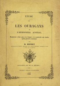 * BRIDET (H.) Etude sur les ouragans de l'hémisphère austral - Manœuvres à faire pour s'en éloigner et se soustraire aux avaries qu'ils peuvent occasionner. 1 vol. gd in-4 broché de 164-[6] pp. Saint-Denis (La Réunion) Rambosson 1861 (Edition...