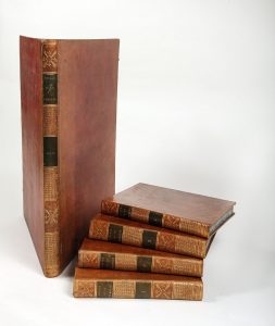 Léger accroc à 1 coiffe du vol. 1 & au mors en pied du vol. 2. Coins frottés à l'atlas. Sinon bel ex. de l'ensemble.