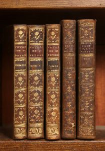 2 vol. gd in-12 de X-388-IV-207-[22]-[3 pp. cat. édit.] pp. reliés plein veau moucheté époque, dos lisse à caissons fleuris, tranches rouges. Amsterdam Rey 1766 (Première édition française). Bien complet de la belle grande carte dépliante en taille-douce de 1758 & du frontispice. Ouvrage d'une grande rareté.
