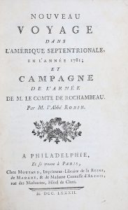 [AMERICANA] ROBIN (Abbé) Nouveau voyage dans l'Amérique septentrionale en l'année 1781 ; et campagne de l'armée de M. le Comte de Rochambeau. 1 vol. in-8 de IX-222 pp. relié ½ veau (post.) à coins vélin, dos lisse à liserés dorés....