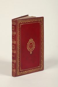 * ANONYME Livre de poste ou état général des postes du royaume de France pour l'an 1827. 1 vol. in-8 de 247 pp. relié plein maroquin rouge à grain long, dos lisse orné, large dentelle dorée d'encadrement sur les plats avec armoiries de Charles...