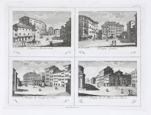 Bel ouvrage de 320 vues gravées des villas, monuments et jardins de Rome.