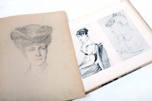* HOUDETOT (Cte Frédéric de) Portraits de famille dessinés de 1798 à 1840. Reproductions en photo-collographie tirées à 25 ex. en 1896, par les soins de Mr le Comte Foy. Album de 49 ff. gd in-4 oblong montés sur onglets, relié ½ vélin...